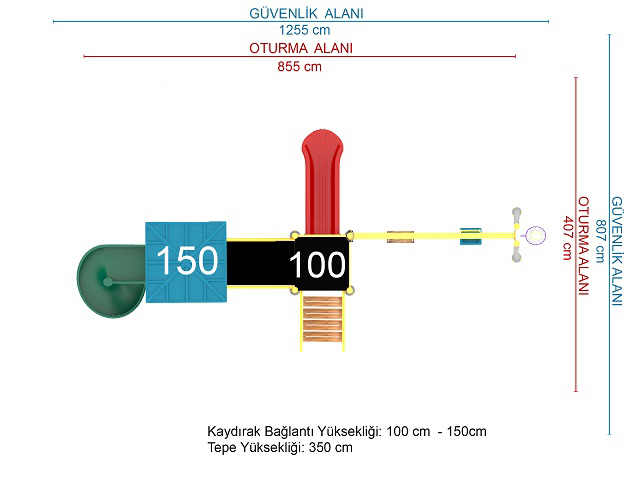 Kaydırak Bağlantı Yüksekliği : 100-150 cm